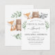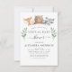Animais da Floresta - Urso, Racoon, Fox Eucalyptus Greenery Botanical Watercolor Primavera Gênero Nêutrico Bebê ou Baby Girl Virtual Baby Shower Invtions em fundo branco - inclui uma bela e elegante tipografia de escrita com folhas botânicas modernas e verde para a celebração especial Madre Ser.