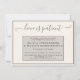 Design moderno, simples e limpo em tons terrosos que combina com qualquer tema de casamento ou evento - em bege claro e marrom quente. Se você já enviou os convites e precisou pausar inesperadamente a data do seu grande evento, envie estes para os seus convidados. Usamos uma fonte manuscrita moderna para o título 'o amor é paciente', você pode facilmente alterar esta palavra apenas digitando entre as caixinhas para manter os floreios iniciais e finais. Use os demais campos do modelo para adicionar seus detalhes pessoais e tornar este design moderno seu.