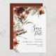 Este convite de casamento rústico natural apresenta terracota aquarela e flores rústicas vermelhas escuras, folhas secas e galhos. Moderno em design trendy.