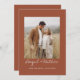 Personalize este convite de Boho Terra Cotta com foto simples e elegante, frente e verso, com sua mensagem e detalhes. Este convite chique inclui tipografia moderna e elegante com escrita à mão estilosa para a celebração especial do casamento.