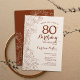 Terracotta Boho Floral 80 Convite de aniversário. Design minimalista moderno com desenhos botânicos em destaque e letra de script de tipografia. Simples trendy convida cartão perfeito para uma festa de na moda. Pode ser personalizado para qualquer idade. Impressos convites Zazzle ou modelo de impressão digital instantânea para download.