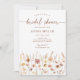 Este convite elegante apresenta flores silvestres boho e roteiro moderno. O trabalho de arte foi pintado à mão por mim usando tintas de aquarela para artistas.