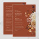 Este elegante convite para o casamento apresenta cor d'água queimada à mão laranja e folhas de terracota, creme e dahlias beige, e belas rosas de cor ferrugem num terraço | fundo de cobre. A parte de trás do inclui texto para adicionar os detalhes do seu casamento. Localize itens correspondentes na Coleção de Casamento Romance de outono de Cobre.