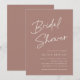 Convide os convidados a comemorar a noiva a estarem com estes convites de chá de panela modernos e mínimos. Design simples apresenta "chá de panela" em um roteiro casual manuscrito, com seus detalhes de evento alinhados à direita em uma moderna letra esbranquiçada em um fundo terraço de tom terrestre.