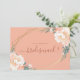 Este design apresenta lindas peônias e rosa-buds em tons de pêssego e creme embebidos em folha de ouro falsa juntamente com verde-folhagem de eucalipto e uma forma geométrica de folha de ouro falsa rodeando seu pedido de damasqueiro em um fundo de terracota leve na frente do cartão. Na parte de trás do cartão, você também tem seu adorável terracota com sua mensagem pessoal para sua dama de honra. Veja a coleção que se segue para os produtos complementares do pacote de casamento. Se você tiver uma pergunta sobre design ou quiser ver este design em outro produto, por favor, sinta-se à vontade para entrar em contato comigo em jschmidtdesignworks@gmail.com. Design © Judith Schmidt.