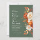 Sage green e terracotta tema de cor de casamento com flores de outono. O texto e as cores podem ser editados.
