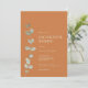 Este convite para o fim de semana da despedida de solteira Terracotta Eucalyptus Deco fornece um boho minimalista, e o país rústico, ocidental, ou tema do deserto. A simples folhagem verde de eucalipto verde-senso elogia o fundo do outono de terracotta, enquanto o tipo de deco de arte combinado com o verde botânico e o pano de fundo laranja queimado cria uma versatilidade para combinar com outros produtos coloridos desta coleção, como a etiqueta verde-salva de presente para seus favores. Essas combinações de cores certamente irão animar os convidados e comparecer à sua celebração.