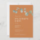 Este convite à festa de noivado Terracotta Eucalyptus Deco proporciona um eco minimalista, e o tema do país rústico, ocidental ou deserto. A simples folhagem verde de eucalipto suculenta elogia o fundo do outono de terracota, enquanto o tipo de deco de arte combinado com o verde botânico e o pano de fundo laranja queimado cria uma versatilidade para combinar com outros produtos coloridos dessa coleção, como os favores ou sinais de pedestal de coquetéis. Essas combinações de cores certamente irão animar os convidados e comparecer às comemorações do seu casamento.