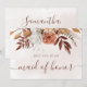 Cartões de madrinha de casamento do estilo boêmico moderno, com flores aquáticas e folhas de outono em tons sujos, como marrom-ferrugem, laranja queimado e terracota. Escolha perfeita para casamentos no outono.