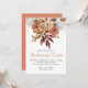 Um bonito convite à janta apressada de Ação de Graças com um guião manuscrito, terra caída, terracota, bisque e creme floral e folhas. Personalize o texto com seus detalhes. Elegante estilo do feitiço.