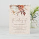 Terracotta Florals Foto de Creme Faux Textura Em Segundo Plano Casamento. As flores, bagas e gramíneas legantes, em cor de outono, terracotta marrom e creme, fluem do topo. O Casamento de está em um roteiro de estilo de escrita manual. Personalize facilmente o resto do texto para seus próprios detalhes. Substitua a imagem de exemplo no verso por sua. Adicione seu código QR ao seu site de casamento no verso faz com que esta seja uma opção conveniente para seus convidados para RSVP e veja todos os detalhes sem a necessidade de RSVP separado e cartões de detalhes. Seu código QR será gerado automaticamente para atualizar o código de amostra no design, quando você simplesmente alterar o URL de amostra no modelo com o URL do seu próprio site de casamento.