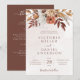 Convites de casamento em estilo boêmio moderno com flores em aquarela e folhas de outono em tons terrosos como marrom enferrujado, laranja queimado e terracota. Escolha perfeita para casamentos de outono.