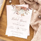 Convites de chá de panela modernos do estilo boêmico com flores aquáticas e folhas de outono em tons sujos como marrom-ferrugem, laranja queimado e terracota. Escolha perfeita para casamentos no outono.