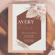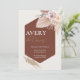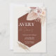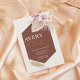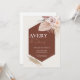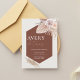 The combination of muted terracotta, blush, and ivory tones brings depth and sophistication, while the botanical accents add a soft, organic touch. Clean, centered wording ensures your wedding details are easy to read, beautifully balanced against the striking geometric shape.