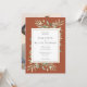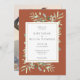 Apresentando delicadas folhas de cor aquática verde e uma estrutura de ouro em um fundo de terracota, este convite de casamento botânico pode ser personalizado com sua foto e informações especiais sobre o dia do casamento. Projetado por Thisnotme©