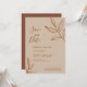 Convide amigos e familiares para uma celebração de casamento virtual com este convite simples e elegante de save the date com esquema de cores terracota terroso e desenho de folhas esboçadas. Personalize com os detalhes do seu casamento.