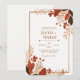 Set a warm and inviting tone for your special day with this elegant autumnal botanical arrangement. The composition features stylized leaf clusters in earthy terracotta and burnt orange tones, complemented by deep chocolate brown foliage detailed with delicate gold line patterns. A minimal gold rectangular frame provides a crisp, sophisticated focal point for your ceremony details, creating a modern organic look against the clean white backdrop. This design serves as an exquisite foundation for a wedding invitation, making it the premier choice for a formal fall ceremony, a rustic garden celebration, or a sophisticated thanksgiving-themed wedding. These motifs ensure your stationery stands out with an artistic, high-end feel that captures the essence of refined nature from the moment your guest opens the envelope.