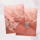 Este simples e elegante cartão de convite e detalhes do casamento automático tem um tema de cor terracotta com destaque sutil de folhas monocromáticas sobre o fundo do gradiente de blush to terracotta - por katz_d_zynes