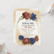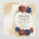 Convites de festas de aniversários de queda de tons de terra lindos, com terracota e flores azuis marinhos com folhas verdes. São simulados os detalhes do brilho dourado. PARA MAIS PRODUTOS CORRESPONDENTES, clique na coleção acima ou entre em contato comigo
