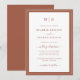 Convite para Casamento de Terracotta Monograma. Faça seu convite de casamento tão memorável quanto seu dia especial com este design e na moda. Apresentando um olhar simples e minimalista com um toque clássico tradicional, este convite moderno apenas para texto apresenta um roteiro de caligrafia com letra manual com um clássico terracota / quadro de borda laranja queimada. Encontre produtos coordenadores no Simple Elegant Terracotta Border Wedding Suite.