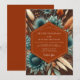 A rich tapestry of deep blues and burnt oranges evokes a moody, enchanting atmosphere. The design features a dense arrangement of abstract botanical elements, creating an opulent and rustic feel perfect for an autumn occasion.