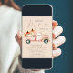 Um belo convite para chás de fraldas de outono, neutro em termos de gênero, que inclui "uma doce abóbora está a caminho" escrito numa mistura de tipografia moderna de cinzas e uma escrita de terracota com um inchaço cardíaco, e aquarelas de um caminhão-safra cheio de abóboras laranja e buquês florais de creme. Personalize facilmente o nome da mãe e os detalhes do chá em uma simples tipografia.