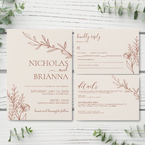 Convites Terracotta Queimou Foto De Casamento Minimalista L