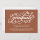 Vamos celebrar o formando! Convide convidados para o seu evento com este convite personalizável para a graduação de fotos. Apresenta caligrafia rústica com sotaque floral e foliar. Personalize-o adicionando seus detalhes. Este convite para a graduação do terracotta também está disponível em outros estoques de cartolina e cores.