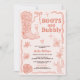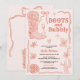Celebre em estilo com o nosso chá de panela desenhado à mão "Boots and Bubble", perfeito para um evento divertido e chique de temática russa no país. Este design lúdico apresenta ilustrações desenhadas à mão de uma bota de na moda, um vidro de champanhe, e elementos florais brancos, tudo em terracota vibrante e pêssego mole, editáveis. A letra casual e festiva adiciona um toque de charme, definindo o tom perfeito para uma celebração alegre e memorável. Este convite é totalmente editável, permitindo que você personalize o texto e as cores para corresponder ao seu tema de chá de panela exclusivo. Quer você esteja hospedando um quintal ou uma festa rústica de vinhedo, este convite garante que seus convidados ficarão animados pelas festividades.