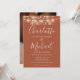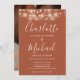 Com luzes bonito de cordas e nomes de estilo de assinatura, este elegante convite de casamento pode ser personalizado com os detalhes do seu dia de casamento em letras brancas chic num fundo de terracota com a sua foto escolhida no verso. Projetado por Thisnotme©