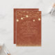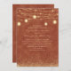 Teracota moderna, elegante e chic e convite para casamento de ouro com brilho dourado e luzes de cordas. Personalize com seu próprio texto.