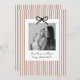 Looking for a sweet and meaningful way to ask a loved one to be your baby's Godmother? This card design is the perfect way to pop the question! Whether you're asking a family member or close friends, this template helps you create a heartfelt moment that they'll treasure forever. This design features a terracotta stripy background and a black bow, along with space for a photo of your choice. You can edit the colour of the stripes, bow and all of the text in this design.