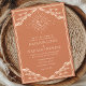 Adicione um toque de magia celestial ao seu grande dia! Estes convites de casamento góticos antigos apresentam um design de inspiração tarot com um sol radiante, lua, estrelas e nuvens em branco contra um rico fundo de terracota. Personalize-o para as suas necessidades.