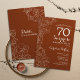 Floral Terracotta Boho Burnt Orange Surprise 70 Convite de aniversário. Design minimalista moderno com sotaques botânicos e letra de escrita tipográfica. Simples cartão de convite floral perfeito para uma festa surpresa na moda. Pode ser personalizado para qualquer idade. Impressos convites Zazzle ou modelo de impressão digital instantânea para download.
