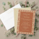 Estilo de vintage convite de casamento boho com quadro decorativo e combinação de fontes elegante serif e san serif em creme suave sobre fundo de terracota leve na frente, e fundo de creme leve no verso com iniciais de casal