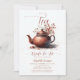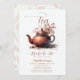 Um belo e chic terracotta floral chá de panela convite modelo com tema flores silvestres, com flores silvestres a aquarelas em tons de terracotta, aliado a caligrafia elegante, bem como um pote de chá cerâmico moderno com alguns filhotes de plantas secas e flores silvestres. Um convite moderno e elegante que celebrará uma noiva a ser com elegância e estilo. Perfeito para noivas que amam a laranja queimada, estética do terracota, designs de safra, flores silvestres, flores secas e caligrafia.