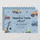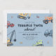 Celebre o grande dia do seu pequeno construtor com este divertido Convite de Aniversário de Dois Caminhões de Construção! Apresentando veículos de construção coloridos e tipografia divertida, este convite dá o tom perfeito para uma festa de segundo aniversário animada e aventureira. Perfeito para crianças que amam caminhões e cavam na terra, este design é brincalhão e vibrante, fazer qualquer robalo de aniversário inesquecível.