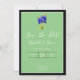 Convide familiares e amigos para o seu casamento com esta elegante temporada de Primavera, convite floral Texas Bluebonnet. Ele apresenta um design simplista com flores de bluebonnet, um roteiro elegante com sotaques preto e branco. Personalize adicionando nomes, data, hora, local e outros detalhes do evento no verso. As cores do casamento floral de bluebonnet são perfeitas para casamentos de primavera e verão.