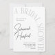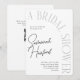 Celebre a noiva moderna para estar com um chá de panela simples e chique em preto e branco limpo e mínimo com detalhes de arte de tendências. O texto fácil de editar é flexível para todos os tipos de texto e detalhes personalizados, enquanto o verso tem um conveniente código QR digitalizável para levar os convidados diretamente aos registros para comprar presentes.