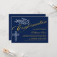 © Designs socialitas. Nosso belo convite para confirmação de caligrafia tem uma pomba, cruz e belo texto caligráfico em ouro e branco. O fundo é azul escuro. Um convite encantador que é neutro em termos de gênero e que pode ser usado para um menino ou menina. Substitua facilmente nosso texto de modelo com o seu. Todos os elementos de design podem ser movidos, redimensionados ou excluídos.