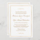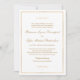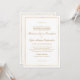 Um convite de casamento saboroso com simplicidade clássica, este design apresenta uma fina fronteira ouro em torno do texto dourado e embelezado com florescimento caligráfico. Você pode adicionar, remover ou ajustar o posicionamento do texto de acordo com as suas necessidades. O popular fundo branco soma-se à simplicidade limpa deste design.