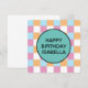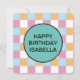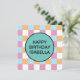 Padrão de xadrez legal, azul, laranja, branco e rosa com um modelo de texto. Para editar, clique em personalizar e altere as palavras.