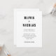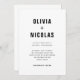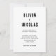 Estes convites de casamento na moda, modernos, apresentam texto negro em negrito sobre um fundo branco limpo, para um olhar que é uma versão atualizada de um clássico.