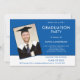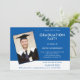 Texto Simples Foto Azul Graduação Branco 2025. Um design moderno que é totalmente personalizável, com letras brancas em um fundo azul com uma grande borda branca ao longo da borda inferior. Troque facilmente em sua própria foto de orientação para retratos, e o texto pode ser facilmente personalizado também em ambos os lados.