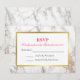 Um RSVP de casamento sofisticado com um design moderno - uma textura de mármore falso branca compõe o fundo. Sobreposta a ela há uma moldura retangular com uma borda gradiente dourada.