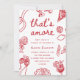 Celebrate your engagement with this “That’s Amore” engagement party invitation by Redwood & Vine Design Co, inspired by Italian aperitivo culture, shared plates, and spritz-filled celebrations. Designed with bold red artwork and whimsical doodle food and cocktail illustrations, this invite sets the tone for a relaxed yet stylish gathering.