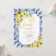 The back of the invitation continues the blue tile and watercolor lemon floral design, creating a cohesive and polished stationery set. Easily personalize with your event details to create a memorable and beautifully styled bridal shower invitation.