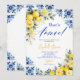 The back of the invitation continues the blue tile and watercolor lemon floral design, creating a cohesive and polished stationery set. Easily personalize with your event details to create a memorable and beautifully styled bridal shower invitation.