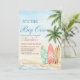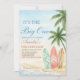 The Big One Beach Surf 1st Birthday Invitation A Watercolor Surfboard Beach First Birthday invitation featuring tall palm trees, colorful floral and chevron surfboards, and a gentle ocean shoreline. Perfect for parents planning a stylish "The Big One" celebration for their little surfer.