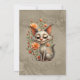 The mischievous cat Melodie and the floral splendor. A cute cartoon cat with large, expressive ears. The cat wears a mischievous smile and is framed by long, elegant whiskers. Delicate peach-colored flowers bloom around it, giving the image a playful and lively touch. The background is a muted beige with floral patterns, emphasizing the dreamy atmosphere of the artwork. The soft, slightly blurred effect lends the image a gentle, almost dreamy mood, making it an enchanting eye-catcher full of charm and whimsy.